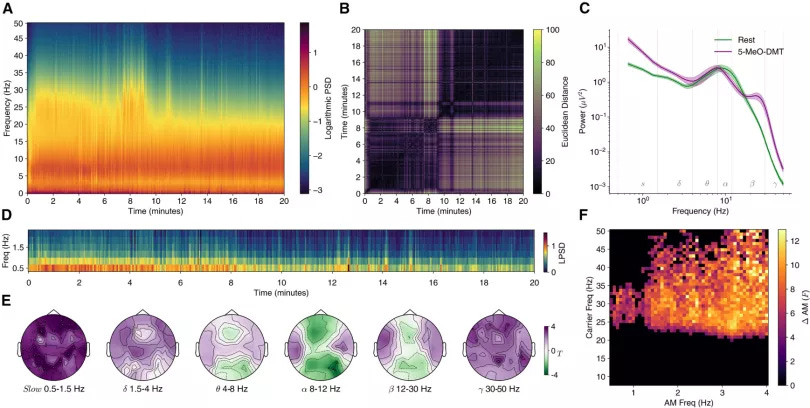 A 2026 UCL study found that 5-MeO-DMT generates chaotic, slow waves at low frequencies that radically reorganize brain dynamics in ways not seen in normal waking states (UCL Brain Sciences, 2026). Connectivity between brain regions that never talk to each other suddenly opens up. Researchers believe this underlies the sense of boundlessness and merger.
