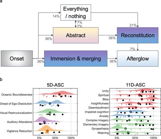 Research has mapped this progression in detail (Big Think). But the clinical description doesn’t capture the magnitude of what’s happening. This isn’t a drug experience. This is a controlled demolition of the wall between you and infinity.